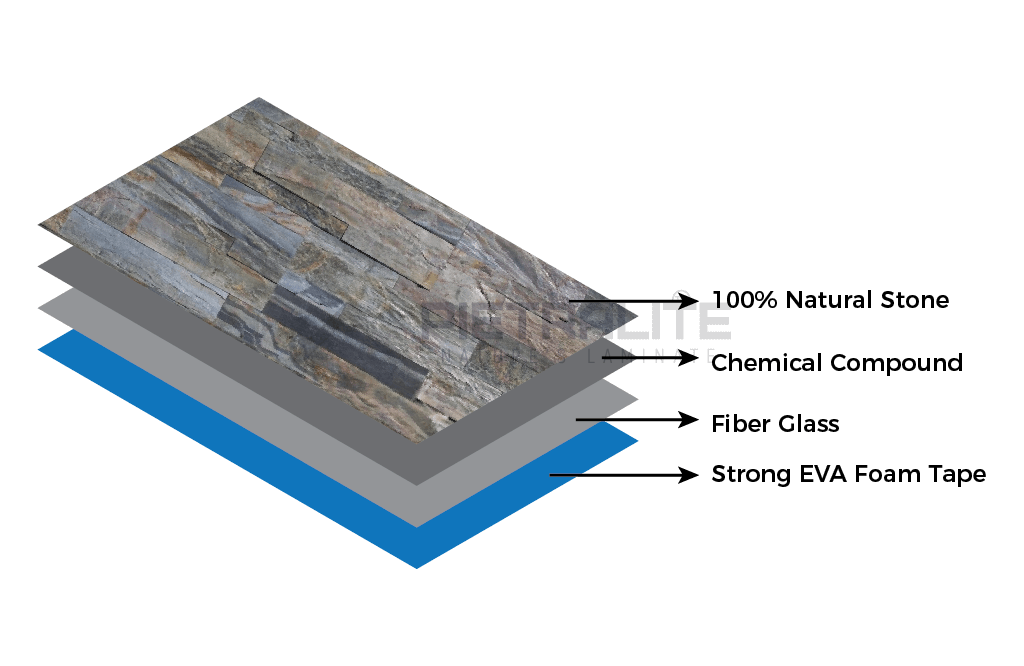 | Materials | 100% natural stone, fiberglass, resin, double-sided adhesive |