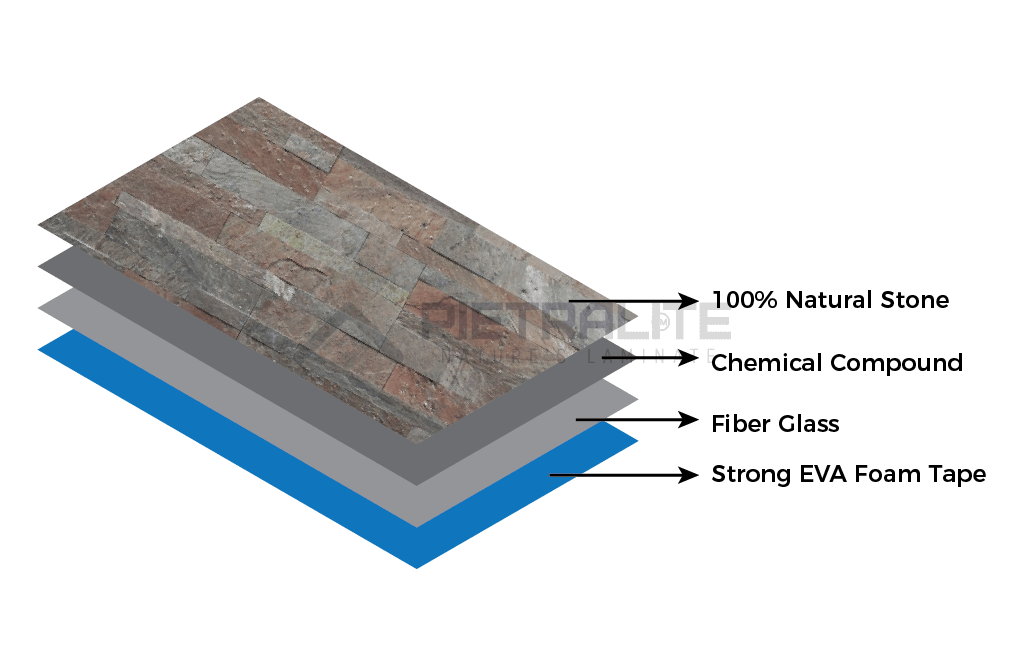 | Materials | 100% natural stone, fiberglass, resin, double-sided adhesive |