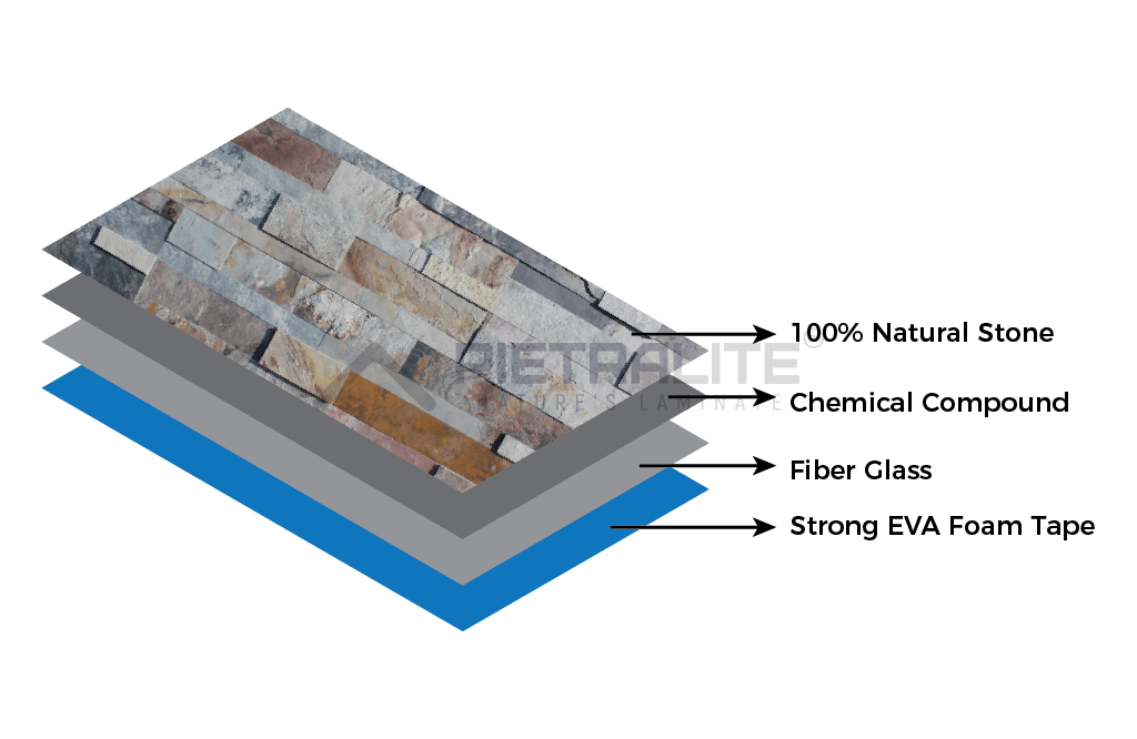 | Materials | 100% natural stone, fiberglass, resin, double-sided adhesive |